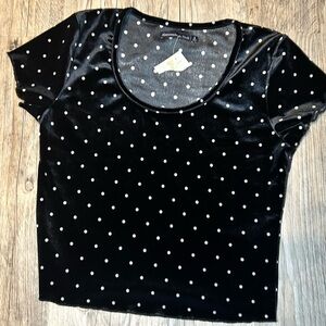 Abercrombie & Fitch Women S Black Velvet Polka Dot Lettuce Trim Crop Top