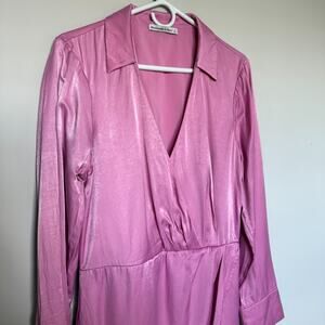 Abercrombie & Fitch Women Satin Dress Large Tall Drapey Barbiecore Holiday Party
