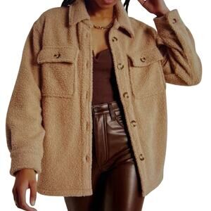 Abercrombie & Fitch Women Sherpa Fleece Shirt Brown Button-Up Shacket M