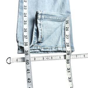 Pre-owned women’s Abercrombie & Fitch The Skinny High Rise jeans with light distressing and split vent hem detail.