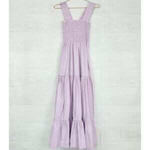 Abercrombie & Fitch Women XS Smocked Easy Maxi Tiered Dress Boho Lavender Poplin