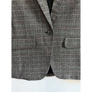 Abercrombie & Fitch Womens 0 Windowpane Single Button Blazer Gray Plaid Stretch