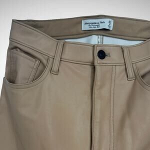 Abercrombie & Fitch Women's Size 4 90s Straight Ultra High Rise Faux Leather Pants Tan Preowned/gently used