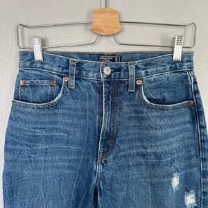 Abercrombie & Fitch Women's A & F Mom Jean Distressed Size 25/ 0R Dark Blue Wash