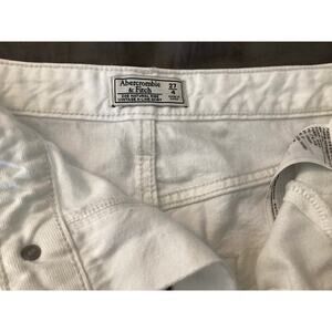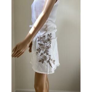 Abercrombie & Fitch White denim with embroidered details, white denim mini skirt raw hem.