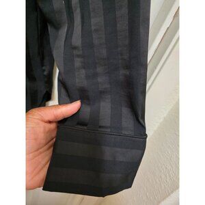 This long-sleeve shirt features a sleek black striped design, a chest pocket, and a button-up closure. Suitable for formal or business settings.