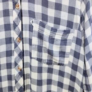 Abercrombie & Fitch Womens Blue Gingham Roll Tab Button Up Blouse Size Medium