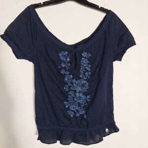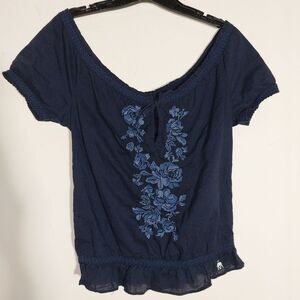 Stylish Navy Embroidered blouse from Abercrombie & Fitch. Perfect for any occasion.
