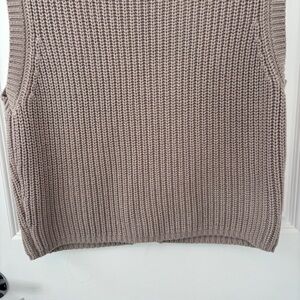 Details: Chunky ribbed Vest, accented buttons, taupe with hints of grayish lavender maybe Greige, beige, detailed neckline. Ribbed knit button-front vest. ; V-neck; 3-button closure;