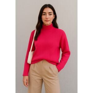 Abercrombie & Fitch Women's Ribbed Easy Turtleneck Sweater Hot Pink Oversized Size XS