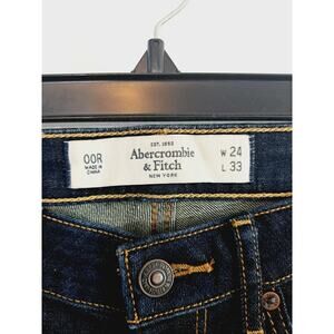Upgrade your wardrobe with these Abercrombie & Fitch women's jeans in a classic blue color and straight leg style. The jeans are made of a comfortable cotton blend fabric with a denim texture, featuring a 5-pocket design and a zipper and button closure. The waist size is 24 inches and the inseam is 33 inches, making it a great fit for women of all sizes.