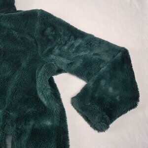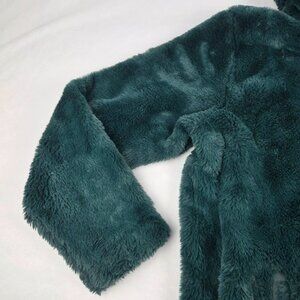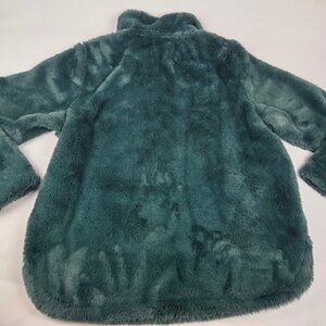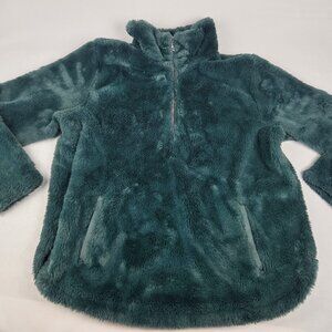 The Abercrombie & Fitch Women's Faux Fur Jacket is a stylish and cozy pullover with a quarter zip closure, perfect for layering during the colder months. Made from polyester fleece, this XL size jacket in a solid green color features long sleeves and accents with a zipper. It offers a comfortable and lightweight feel, making it suitable for loungewear, outdoor activities, everyday wear, and athleisure casual outings. Additionally, this pullover sweatshirt includes convenient pockets for added functionality.