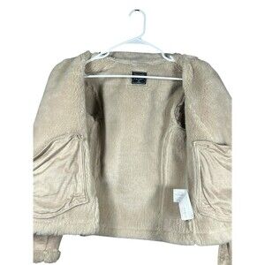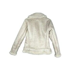 Abercrombie & Fitch Womens Faux Suede Shearling Moto Jacket Size M Tan Beige Coat
