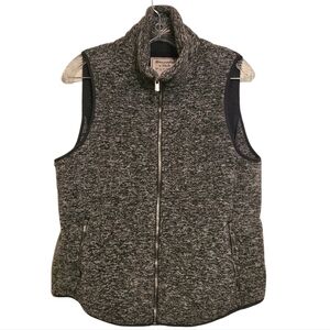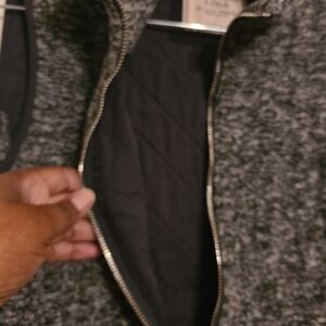 Throw over your long sleeve jumpsuit for running errands or hanging with friends! Women's charcoal gray, quilted pattern fleece vest by Abercrombie & Fitch, size large. Vest has front slant zipper pockets. Fabric blend of polyester, cotton and nylon.