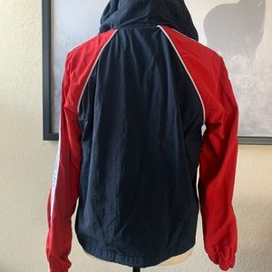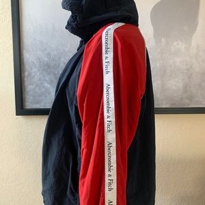 A&F Hooded All weather Jacket Red White Nad Blue with Brand name in the sleeves.Fully lined,