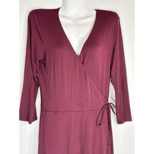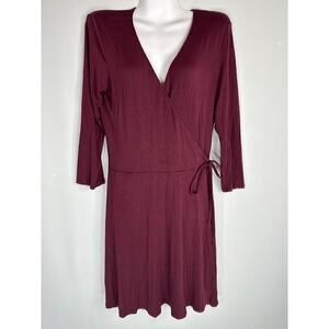 Abercrombie & Fitch Women's Lapel Neckline Faux Wrap Wine Dress Medium