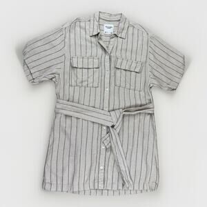 Abercrombie & Fitch Womens Linen Striped Button-Down Shirt Dress S Ivory Boho