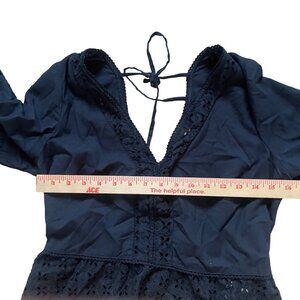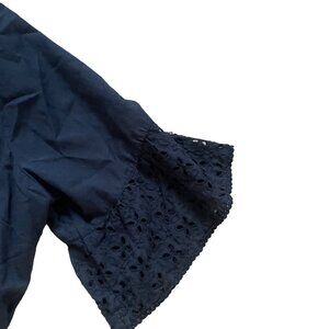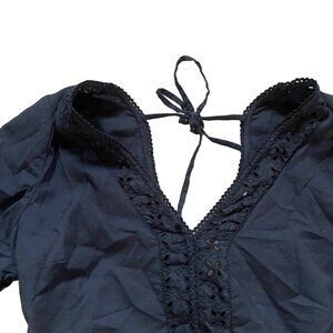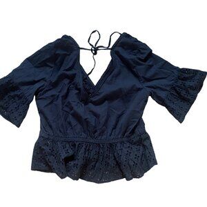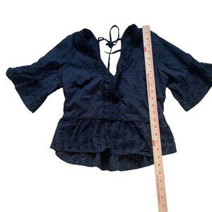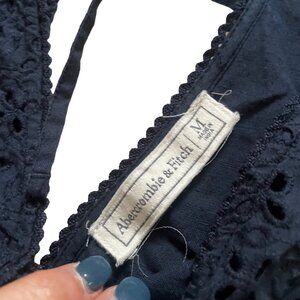 Abercrombie & Fitch Womens Medium Black Eyelet Lace V-Neck Blouse With 3/4 Sleev