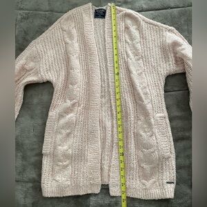 Authentic Abercrombie & Fitch women’s size medium light pink knit cardigan. Soft and cozy with an open-front Features a textured knit design. In excellent condition- no rips, stains or tears. Ideal for layering, and from a smoke free home. See pictures for approximate measurements.