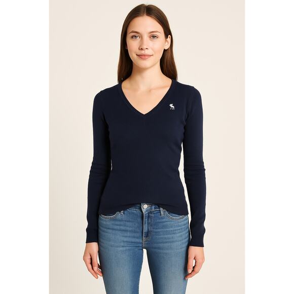 Stay classic and cozy in this Abercrombie & Fitch cashmere sweater, featuring a soft navy blue knit, V-neckline, and the iconic moose logo on the chest. Lightweight yet warm — perfect for layering or wearing on its own for a timeless Y2K-inspired look.