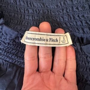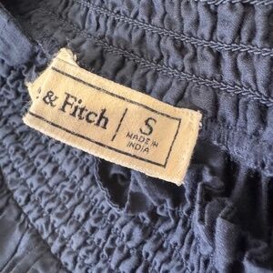 Abercrombie & Fitch Women's Off the Shoulder Navy Eyelet Top Small