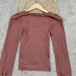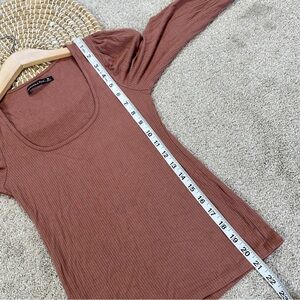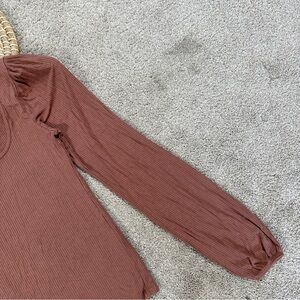 Abercrombie & Fitch Women’s Ribbed Puff Sleeve Longsleeve Shirt in Mauve M