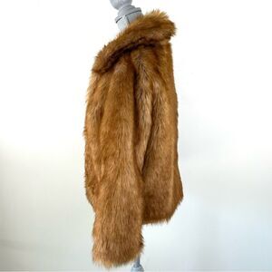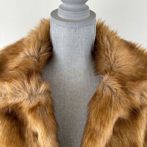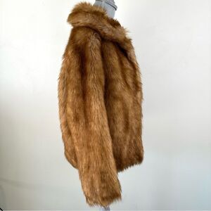 Stay warm and stylish with this Abercrombie & Fitch faux fur jacket in women’s size Medium. Designed in a rich tan/brown hue, this coat features a soft, plush faux fur exterior that adds instant glamour to any outfit. Perfect for layering over dresses, casual looks, or night-out ensembles during fall and winter.