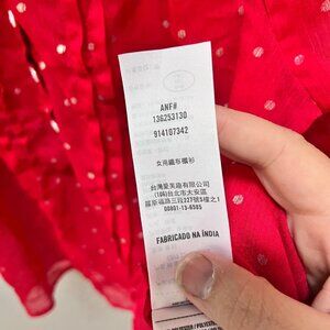 The Abercrombie & Fitch sheer blouse offers a chic and airy design with its vibrant red color and elegant polka dot pattern. Its lightweight fabric ensures comfort, making it suitable for warmer weather. The button-front detail adds a classic touch, ideal for professional or casual settings.
