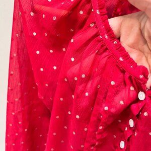 Abercrombie & Fitch Womens Sheer Red Polka Dot Blouse Button-Front Size S