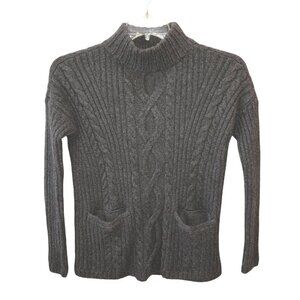Abercrombie & Fitch Womens Size XS Gray Cable Knit Mock Neck Pockets Sweater