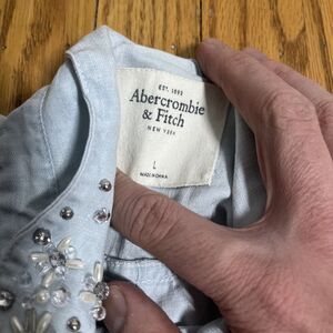 Abercrombie & Fitch Womens Sleeveless Bedazzle Shirt Sz L Button-Up Chambray