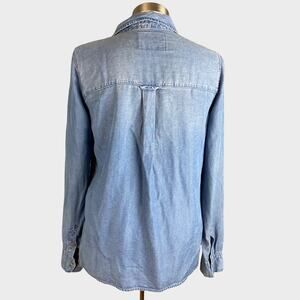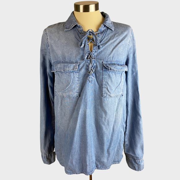 Abercrombie & Fitch Womens Small Blue Chambray Lyocell Shirt Pockets Tie Neck