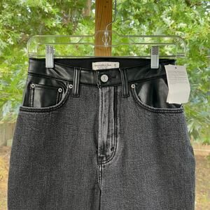 Abercrombie & Fitch Women's Straight High Rise Vegan Leather Jeans Size 2. NEW