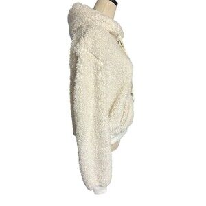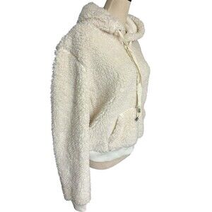 Abercrombie Fitch Womens Sz M Ivory Hoodie Sherpa Fleece Crop 1/4 Zip Sweater