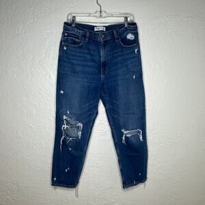 Abercrombie & Fitch Women's The Mom High Rise Ripped Raw Hem Jeans 30/10R