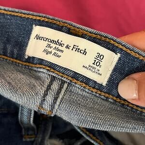 Abercrombie jeans, mom jeans, high rise ripped jeans, raw hem denim, Abercrombie denim, women’s blue jeans, Abercrombie & Fitch jeans, distressed jeans, casual denim, size 30 jeans