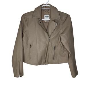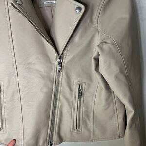 Abercrombie & Fitch Women's XL Vegan Faux Leather Moto Jacket Tan Zip Up EUC