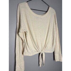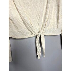 Abercrombie & Fitch Womens XS Oversized Ribbed Knit Tie-Front Cream Crop Top