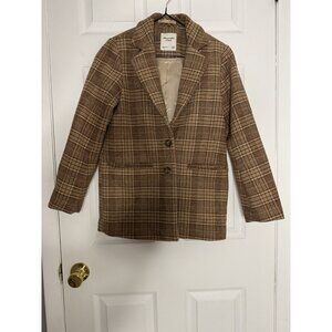 Abercrombie & Fitch Women's XXSP Brown Plaid Dad Coat Jacket Wool-Blend Preppy