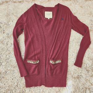 Abercrombie & Fitch Wool Blend Long Cardigan Beaded Detail Maroon