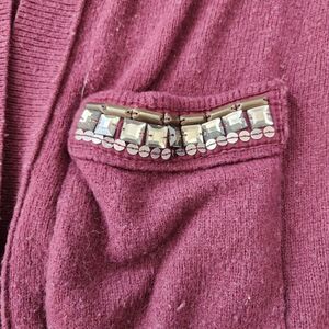 Abercrombie & Fitch Wool Blend Long Cardigan Beaded Detail Maroon Size Medium