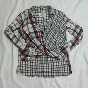 Abercrombie & Fitch Wrap Front Flannel Shirt, Color White/Red/Blue Size XS