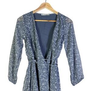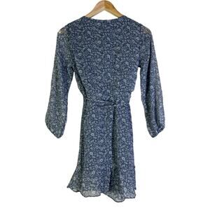 Abercrombie & Fitch Wrap Mini Dress XS Blue Floral Chiffon Sheer 3/4 Sleeve Boho