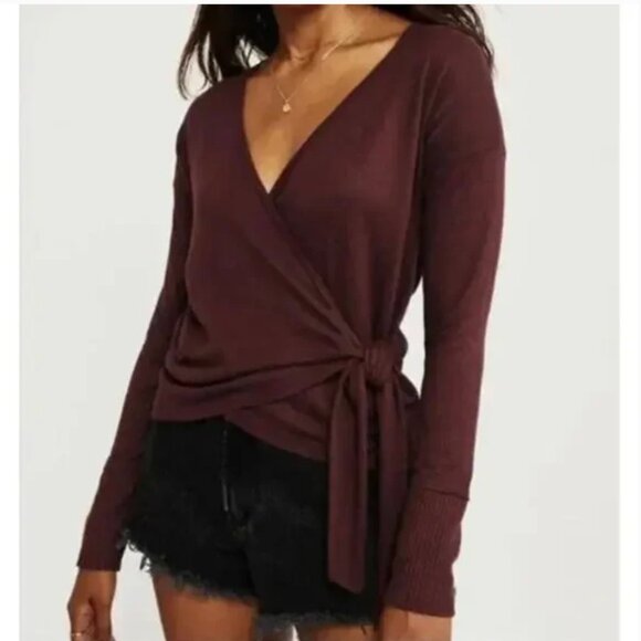 Abercrombie & Fitch Wrap Sweater Soft AF Knit V Neck Top