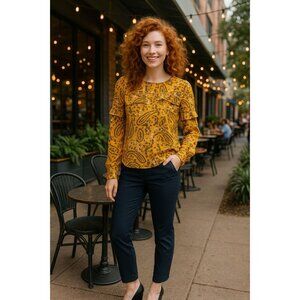 Abercrombie Fitch XS Mustard Paisley Floral Long Sleeve Ruffle Sheer Light Blous