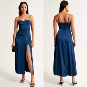 The Abercrombie & Fitch Camille Dress in ivory is a romantic, satin-finish (feels like silk) slip dress perfect for bridal showers, rehearsal dinners, or any elegant occasion. This XS Petite dress features adjustable spaghetti straps, a softly draped bodice, and a flattering smocked back panel for comfort and fit. The midi-length silhouette flows beautifully, while the lined interior ensures a smooth and luxurious feel.