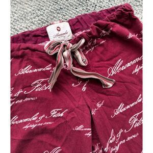 Abercrombie & Fitch original Y2K pajama pants. Maroon with white all over logo. 100% cotton, flannel. Adjustable drawstring. Straight leg. These are from 2005 or 2006. Good condition, light wear.