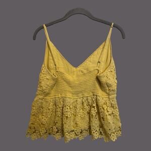 Abercrombie & Fitch Y2K Babydoll Smocked Yellow Floral Lace Semi Crop Top XL
