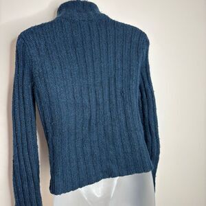 Abercrombie & Fitch Y2K Lambs Wool Blend full zip navy Cableknit Cardigan sweater small