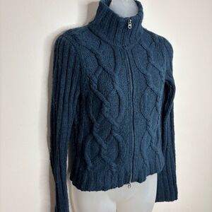 Abercrombie & Fitch Y2K Lambs Wool Blend full zip navy Cableknit Cardigan small